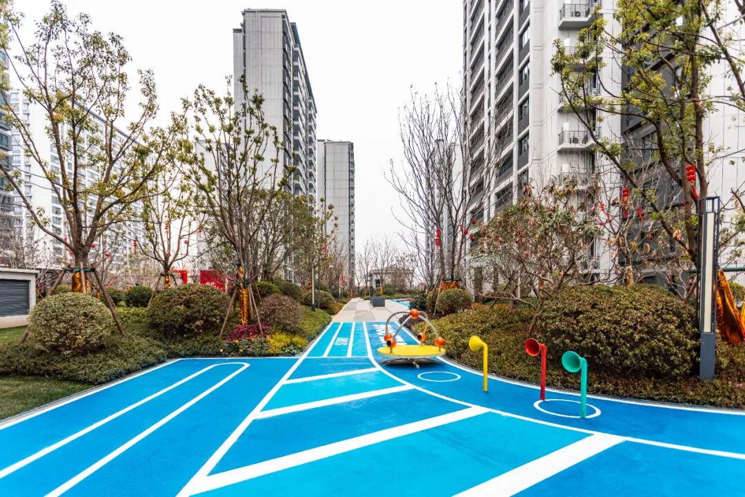 全龄活力健身区则满足了不同人群的运动需求,双环变速跑道串联园区景致,沿途设置热身区、休息区及地面关怀语,适配全龄人群慢跑、快走;器械力量区、球类运动区等搭配多元器械,兼顾力量训练与有氧需求,无论是独享奔跑的静谧,还是与邻里相伴切磋,都能在自然环抱中唤醒元气。