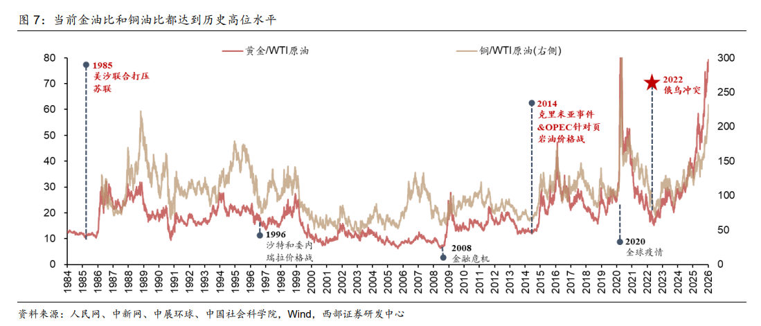 此外,金油比与铜油比均达历史高位,显示油价相对大宗商品整体已显著低估。