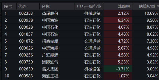 油气ETF汇添富(159309)标的指数成分股多数冲高,中国海油罕见飙涨超6%创历史新高,中国石化、中国石油涨超4%,中远海能、洲际油气涨超5%,杰瑞股份等冲高。