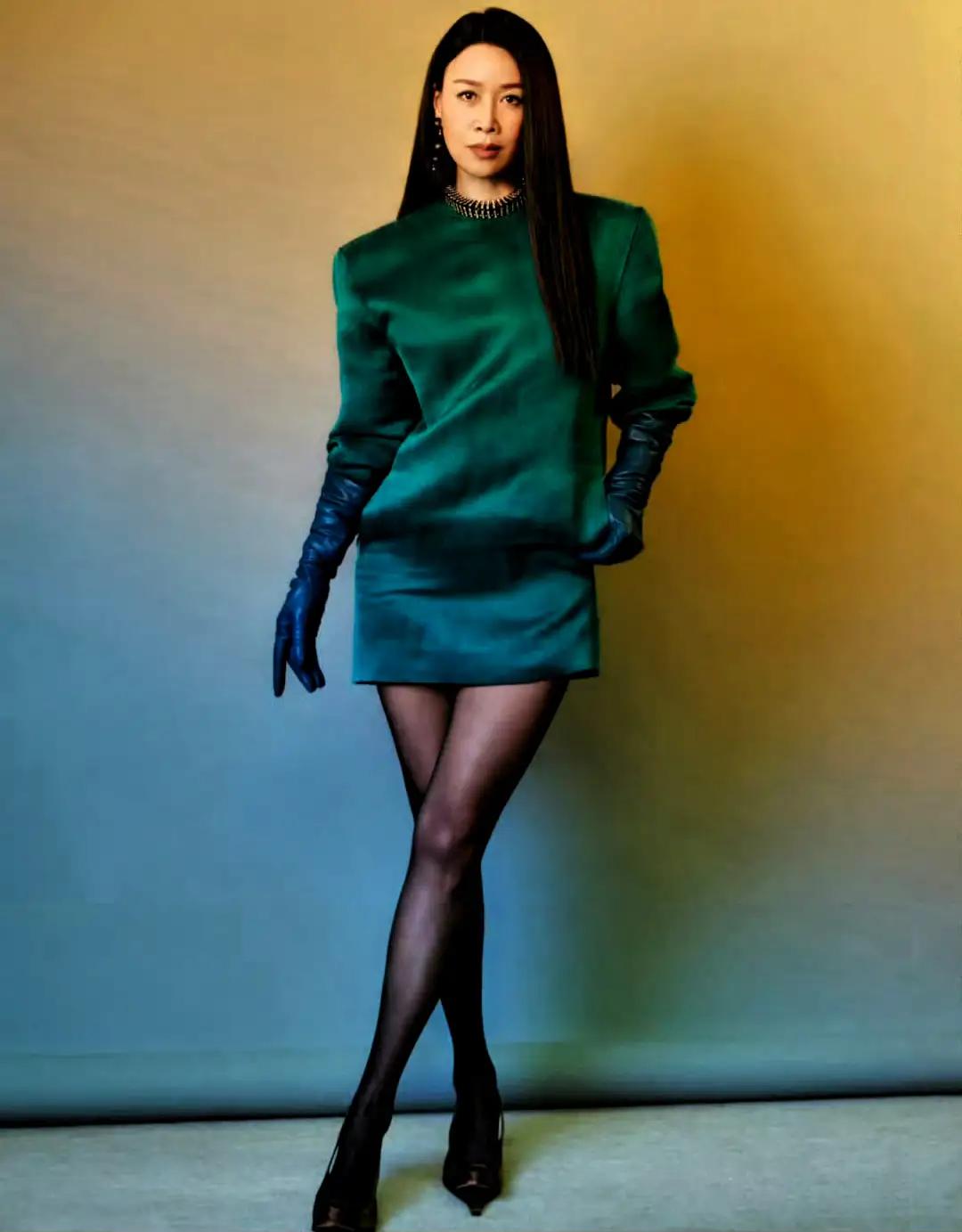 那姐来了,最爱的却是那姐那一抹绿色,暗流涌动,焕发勃勃生机。58岁那姐来了,一身绿色短款连衣裙加十分高跟鞋上场,绿色是春意盎然的样色,那姐很懂哦!那姐青春再现,颜值在线,不老那姐活力满满,斗志昂扬。这样的那姐谁能不喜欢? 复古绿女裙 那英