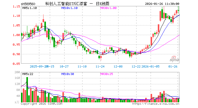 科创人工智能ETF汇添富(589560)业绩比较基准为上证科创板人工智能指数收益率,管理人为汇添富基金管理股份有限公司,基金经理为何丽竹,成立(2025-08-25)以来回报为12.91%,近一个月回报为24.94%。