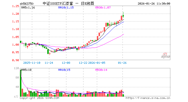 中证500ETF汇添富(563750)业绩比较基准为中证500指数收益率,管理人为汇添富基金管理股份有限公司,基金经理为孙浩,成立(2025-10-22)以来回报为18.25%,近一个月回报为18.45%。