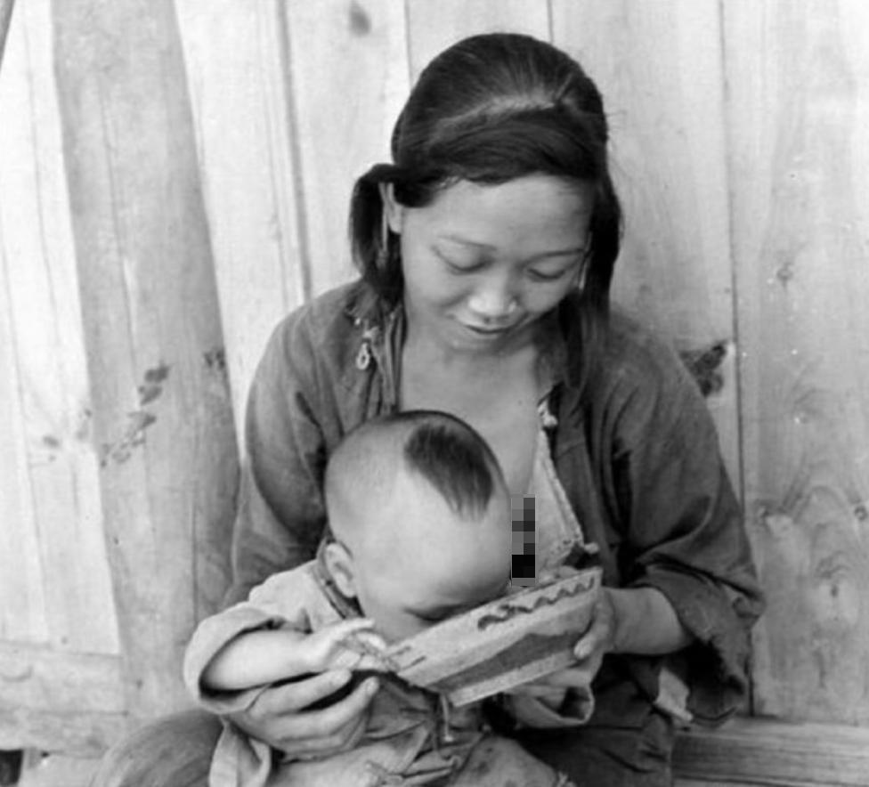 非常珍贵的黑白照片 1941年,陕西。美国《生活》杂志记者卡尔,来到宝鸡县武功镇。在施粥的寺庙门口,她遇见抱着孩子的母亲,记录下这一瞬间。