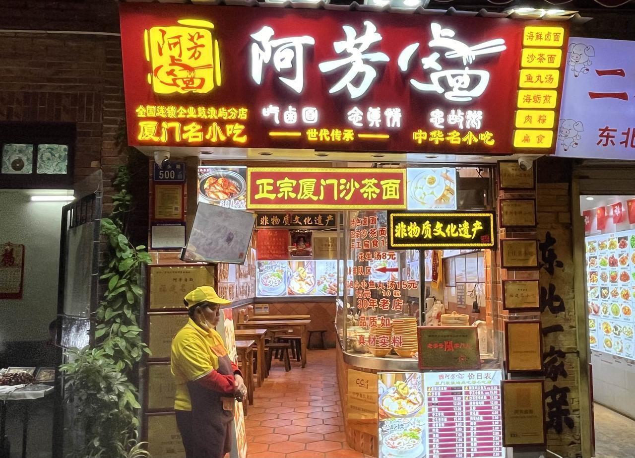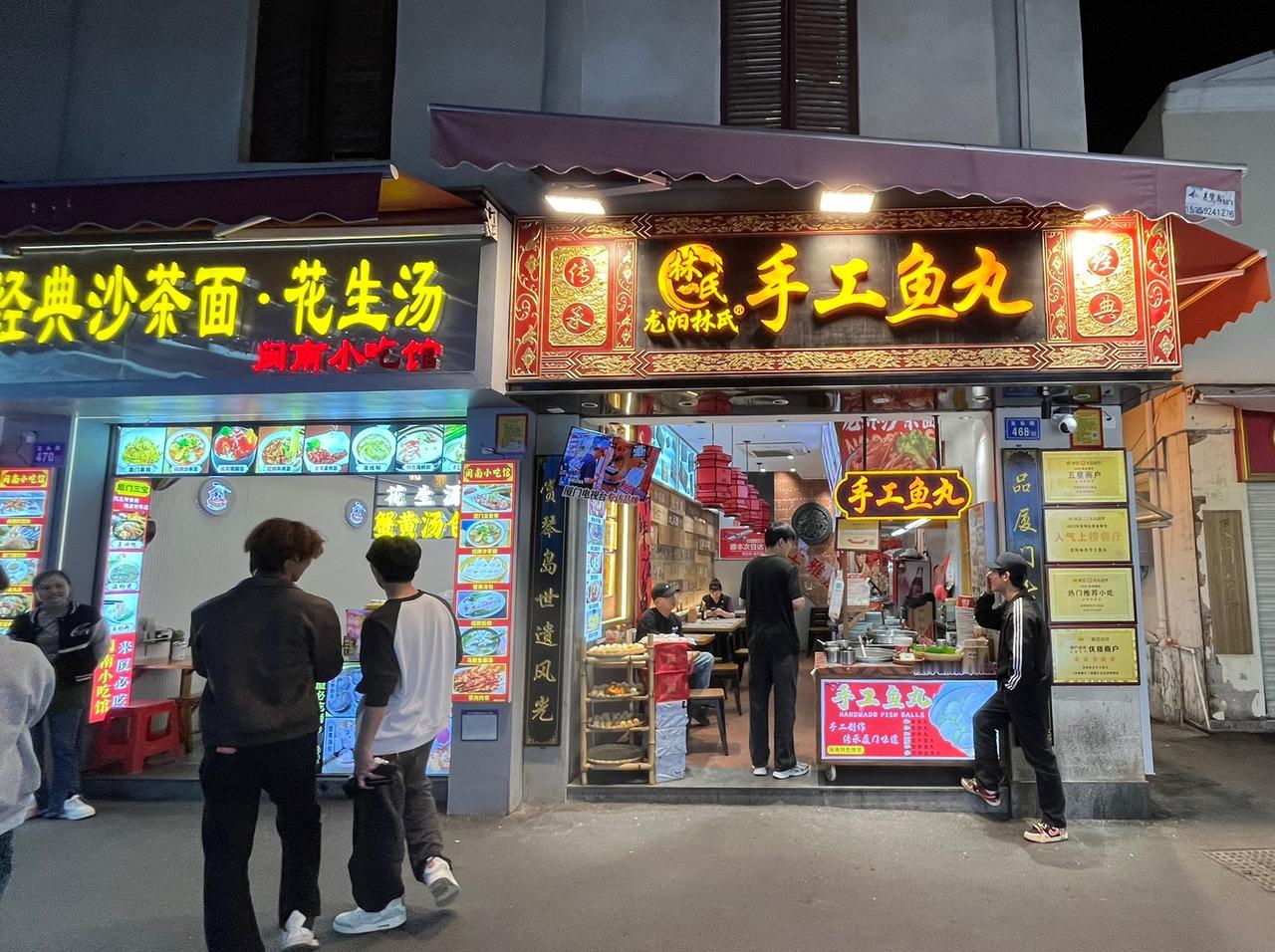 在厦门鼓浪屿,不妨到龙头街去享受各种美食——蛋满灌、虾扯蛋、钵钵鸡、龙头鱼丸、里脊肉串、沙茶面.花生汤、姜母鸭、水煎包、厦门菜…… 2025年12月,我用手机摄影的照片。