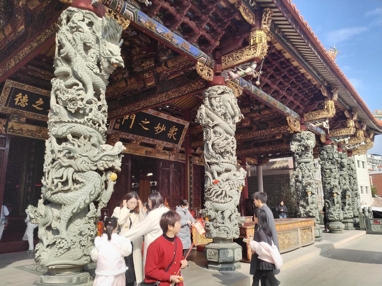泉州,十步一庙,百步一寺果然名不虚传。这座藏在居民区的元妙观,远还远望去,雕梁画柱,斗拱飞檐翘角,金碧辉煌,气度不凡。 今天下午,走进这座市民经常上香朝拜道观,为宏伟的建筑,佛教道观历史文化所震撼。 据说,元妙观,建于西晋太康年间,是泉州传入道教后第一座道观。可惜原道观不毁于”文革"期间,现在的宫殿建于199年。 元妙观,作为泉州道教活动中心,每逢道教有重大节日活动,都会举行打醮仪式,吸引大批市民聚集,场面十分隆重。