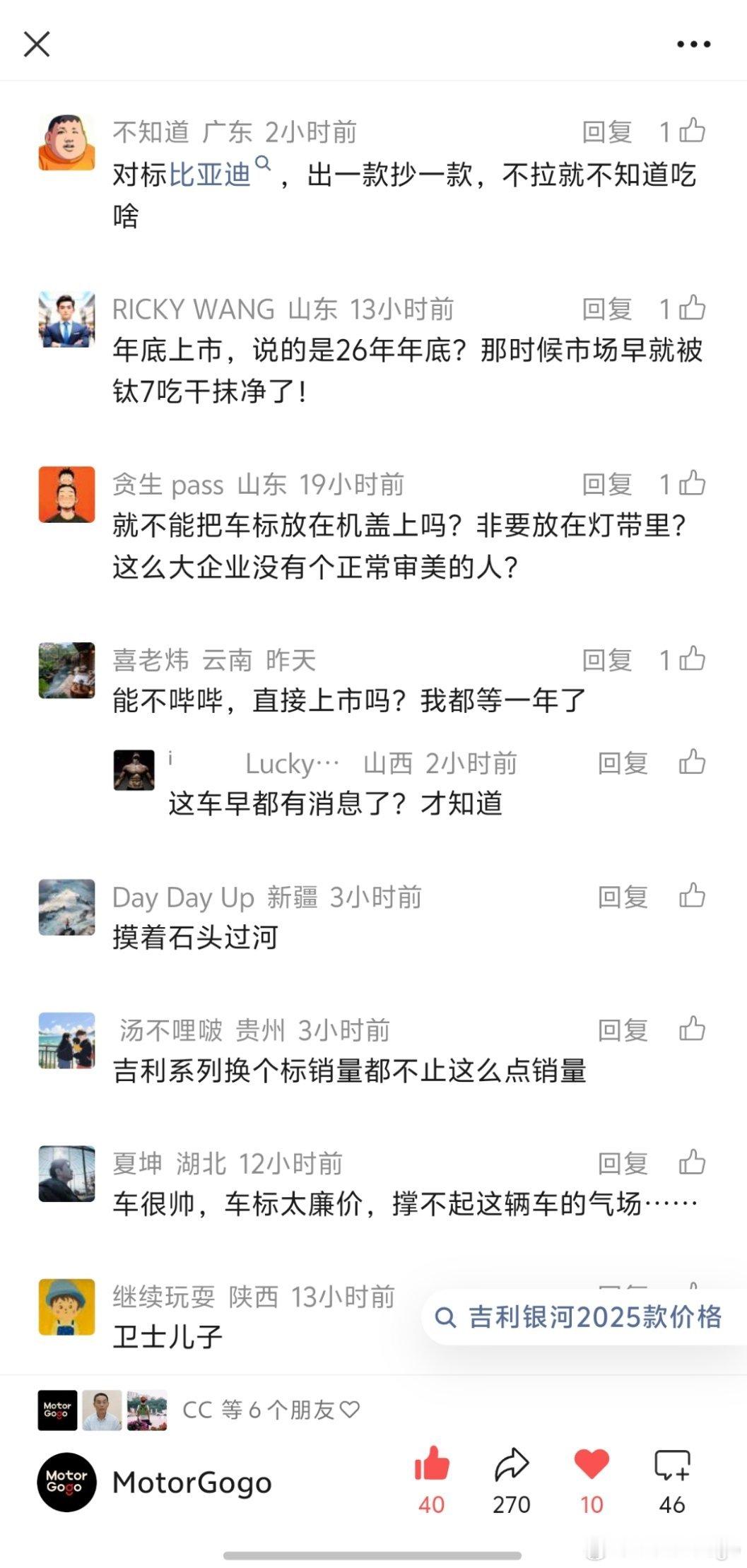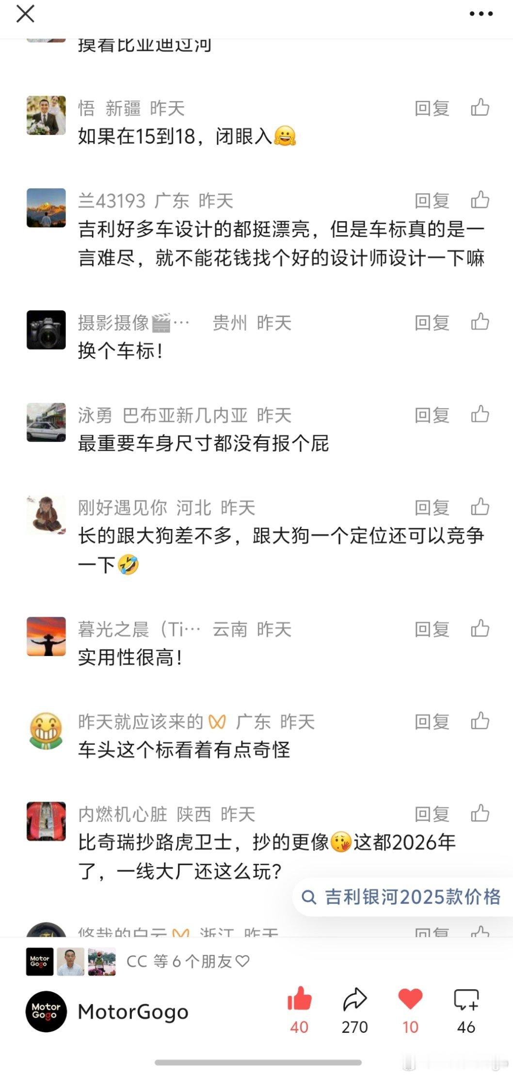 我们公众号银河战舰这篇文章,没想到评论区都在吐槽这个车标大v聊车