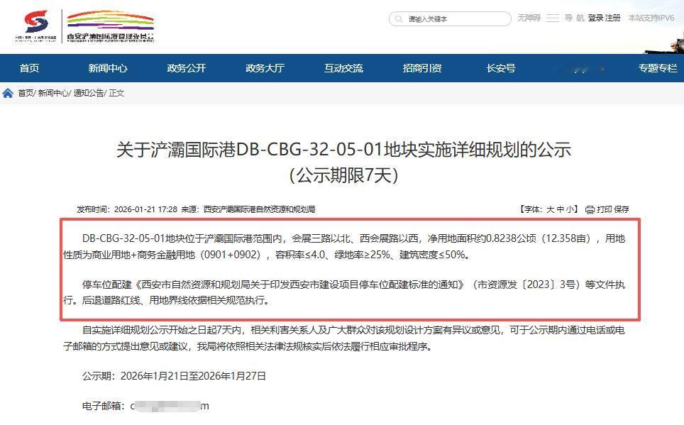 规划公示!西安这里新增一块商业+商务金融用地,其中酒店建筑面积12322平方米... 日前,西安市自然资源和规划局发布《关于浐灞国际港DB-CBG-32-05-01地块实施详细规划的公示》,公示期1月21日至1月27日,内容显示: DB-CBG-32-05-01地块位于西安浐灞国际港范围内,会展三路以北、西会展路以西,净用地面积约0.8238公顷(12.358亩),用地性质为商业用地+商务金融用地(0901+0902),容积率≤4.0、绿地率≥25%、建筑密度≤50%。 其中,地上建筑面积≤32952平方米,包含商务办公建筑面积≤12322平方米、商业建筑面积≤20630平方米(其中酒店建筑面积12322平方米);地下建筑面积最终面积以方案审核为准,人防面积以人防部门审批为准! 从区位上看,宗地位于浐灞国际港会展中心板块,周围配套较为成熟,北侧紧邻根耀集团总部项目(陕西根耀置业有限公司于2025年5月份摘得),东侧紧邻西安国际会展中心,东北侧是砂之船奥莱和浐灞假日酒店,西南侧近邻陕西旺园控股集团有限公司2025年8月26日摘得的48.984亩商住用地,距离西安地铁3号线务庄站约600米左右;周围还有中亚公园、华夏文旅等。 值得注意的是,宗地规划中明确酒店建筑面积12322平方米,意味着片区将会新增一座酒店!目前宗地周围已有西安浐灞喜来登酒店、西安浐灞假日酒店、西安浐灞华邑酒店、宜尚酒店、西安浐灞万枫酒店等。