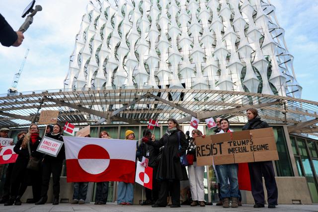 美国驻英国大使馆外24日举行“特朗普别碰格陵兰”抗议活动。图IC