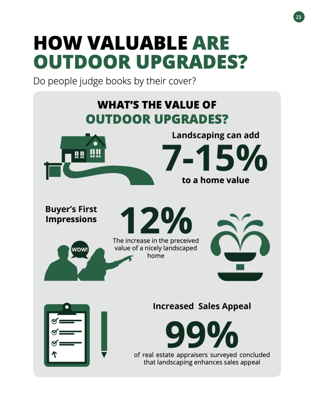 旧金山房地产公司GreenBankerRealEstate在2025年发布的一份销售指南,他们的数据指出完善升级房屋庭院,可使售价上涨7-15%