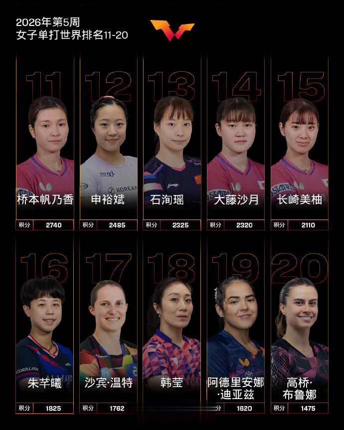 WTT常规挑战赛马斯喀特站女单冠军石洵瑶排名上升2个名次位列第13;亚军何卓佳排名上升8个名次位列第27;四强纵歌曼排名上升16个名次位列第44。