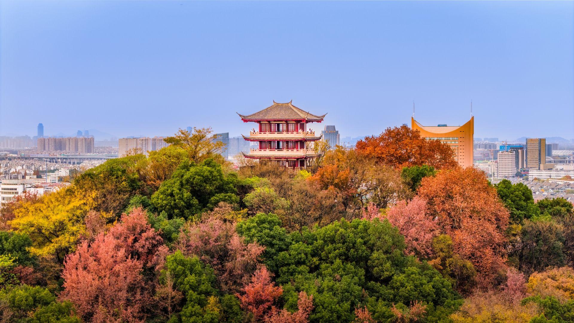 古城中心的府山公园层林尽染。通讯员陶建军/摄