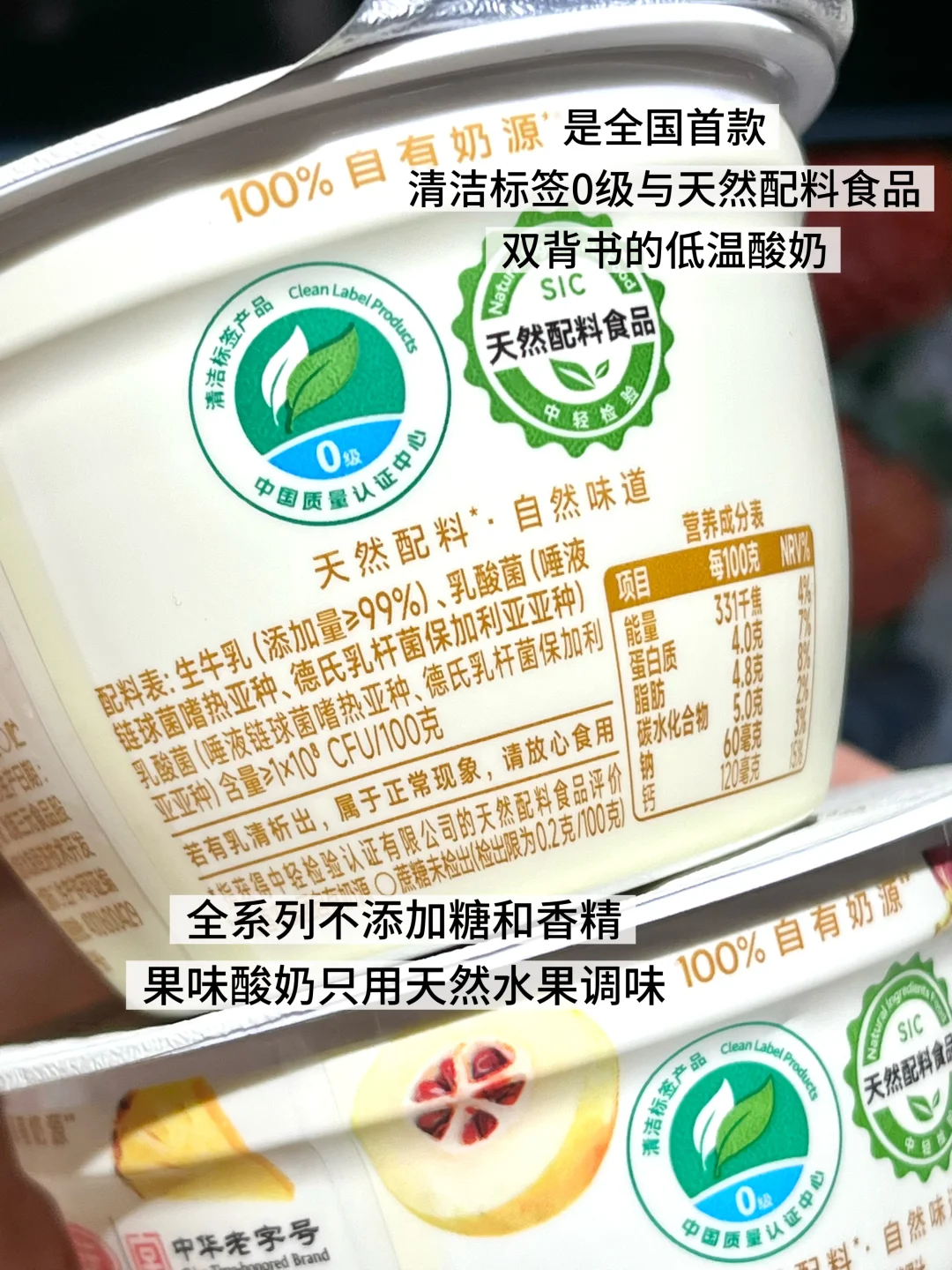 因为三元北京酸奶是全国首款清洁标签0级与天然配料食品双背书的低温酸奶
