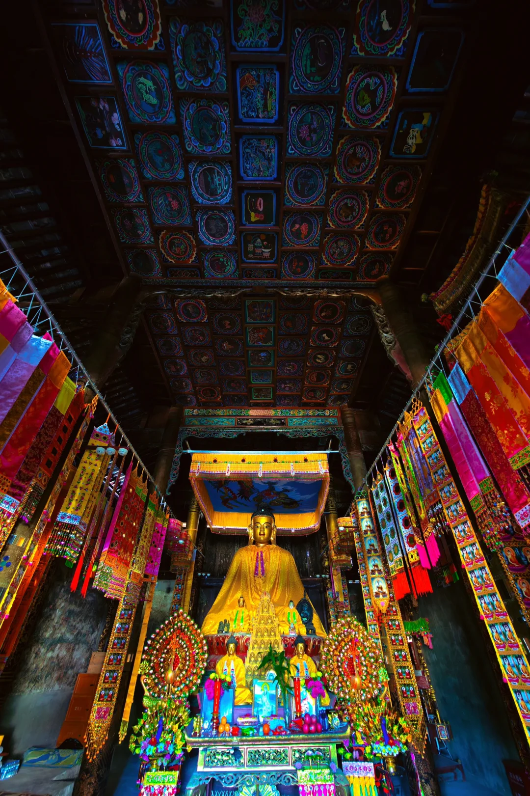 殿堂内藻井均有彩绘,