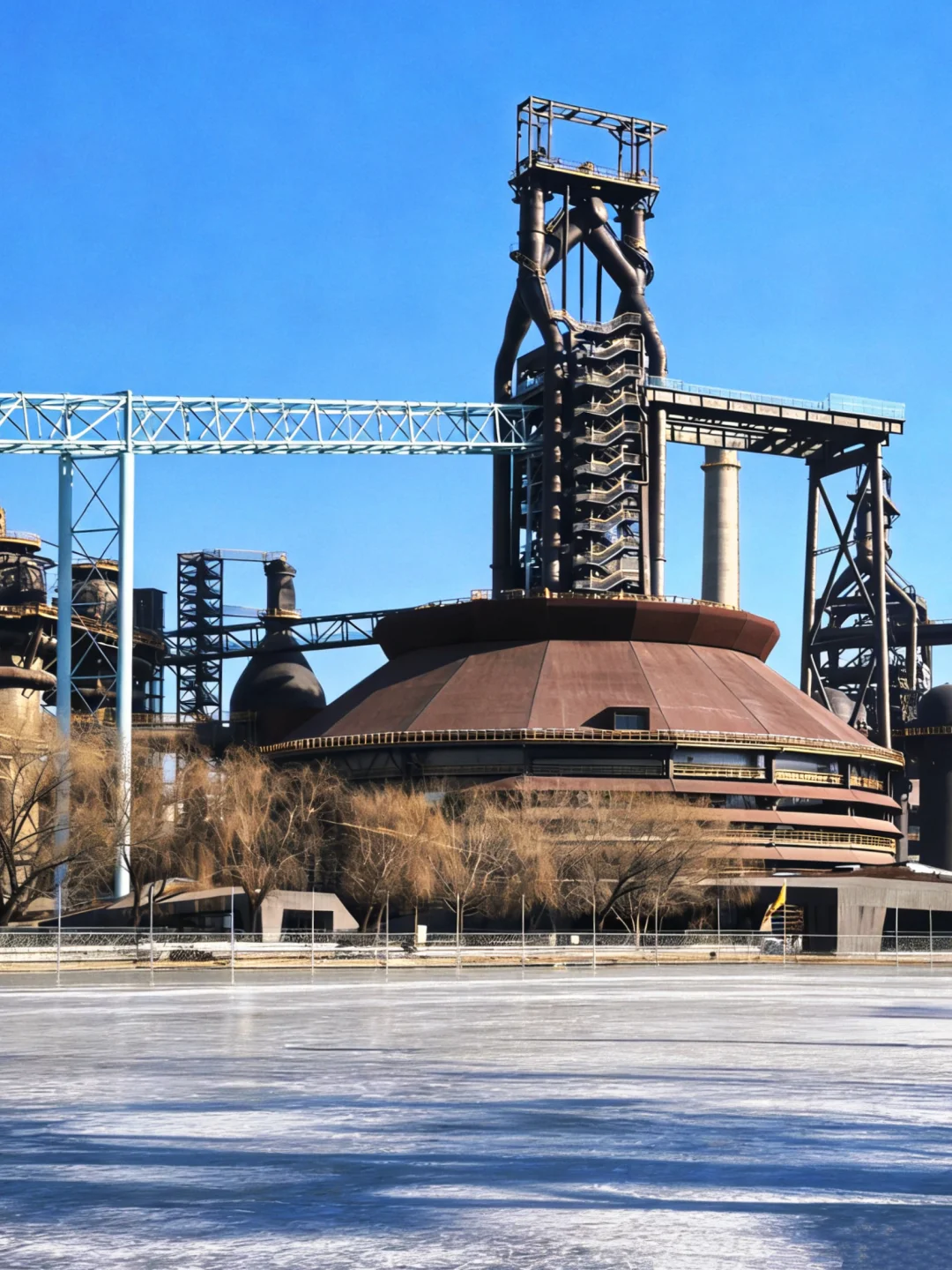 ✅ 秀池冰场:紧邻三高炉,工业风冰面与巨型高炉同框,冬天怎么能少得了玩儿冰车✌旁边还有永定河集,可以顺便去逛逛