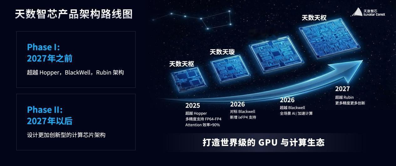 天数天璇架构新增ixFP4精度支持,进一步提升低精度计算效率;天数天玑架构实现全场景AI与加速计算覆盖,打破云端、边缘、终端算力壁垒;天数天权架构则融入更多创新设计,为突破性计算奠定基础。