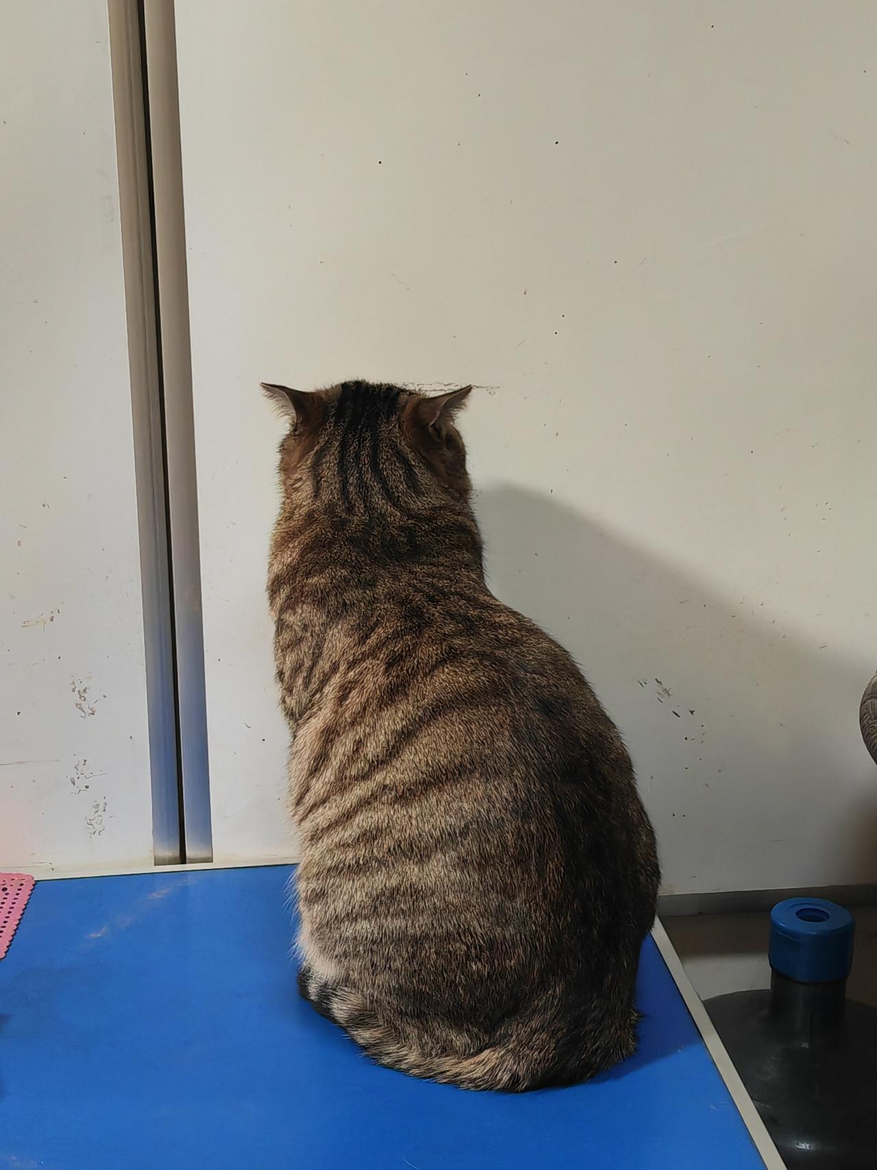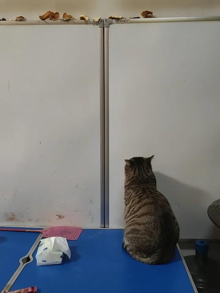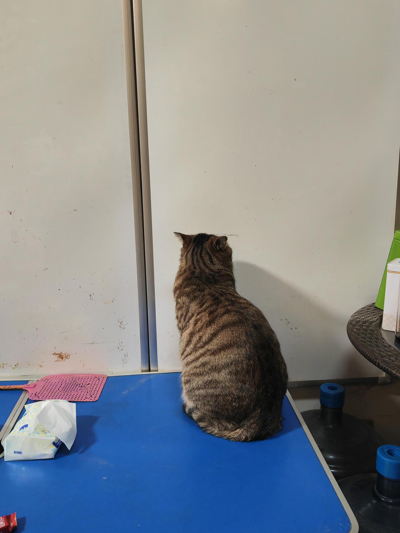 冬天,商店里的石墨烯取暖板,取暖板下边有个茶几,猫出去转一圈,由于天冷,猫回来后面对取暖板取暖,久而久之,猫和面壁思过一样。 动物很聪明,动物都有条件反射。