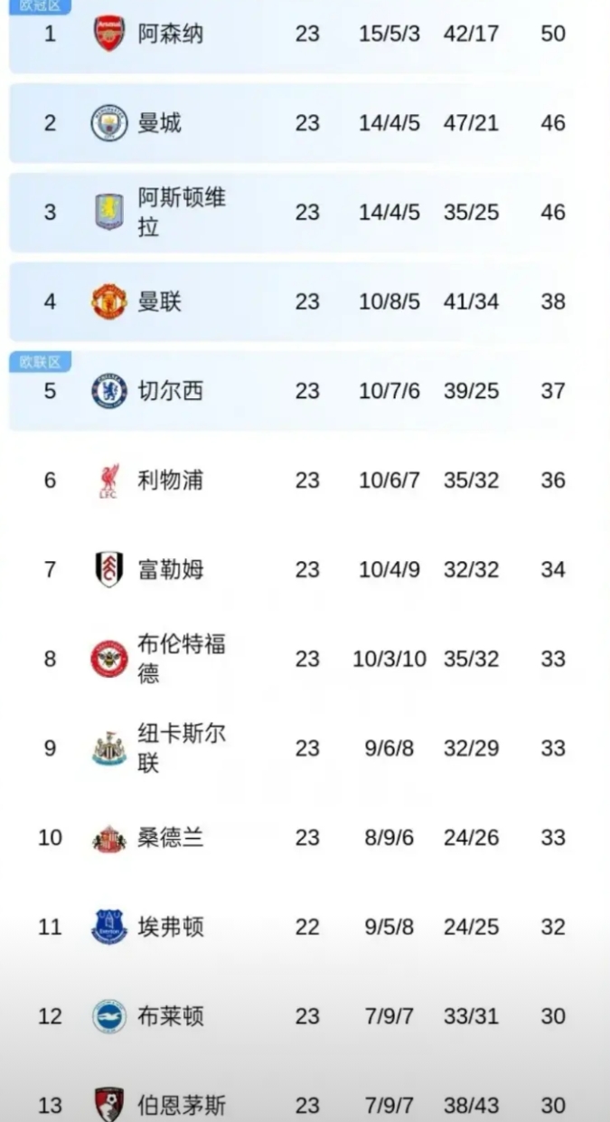 现在的曼联已经跻身英超第四名,比阿莫林执教下的曼联强太多了,而阿森纳和排名第二的曼城积分差距缩小到四分,难道阿森纳赛季后半程掉链子的“魔咒”又要开始了吗?