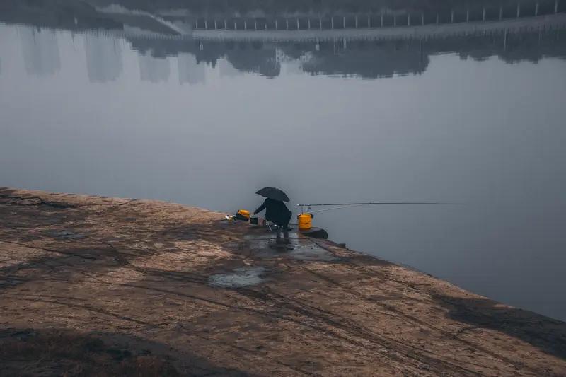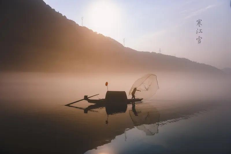 上联:长亭远观,百里云烟裹万壑; 下联:寒江独钓,一蓑风雪揽千山。