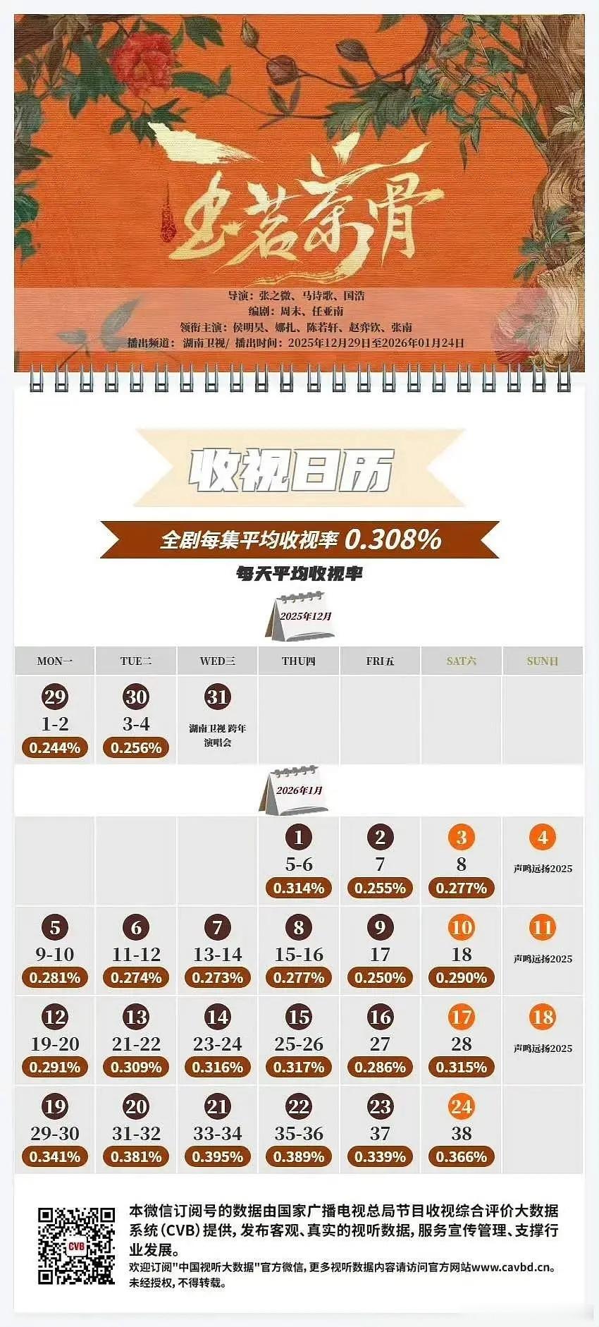 侯明昊《玉茗茶骨》卫视CVB,接0.201%的盘子拉升幅53%拉升得好猛,难怪湖南卫视那么满意,广电认证开门红侯明昊上星实绩🈶