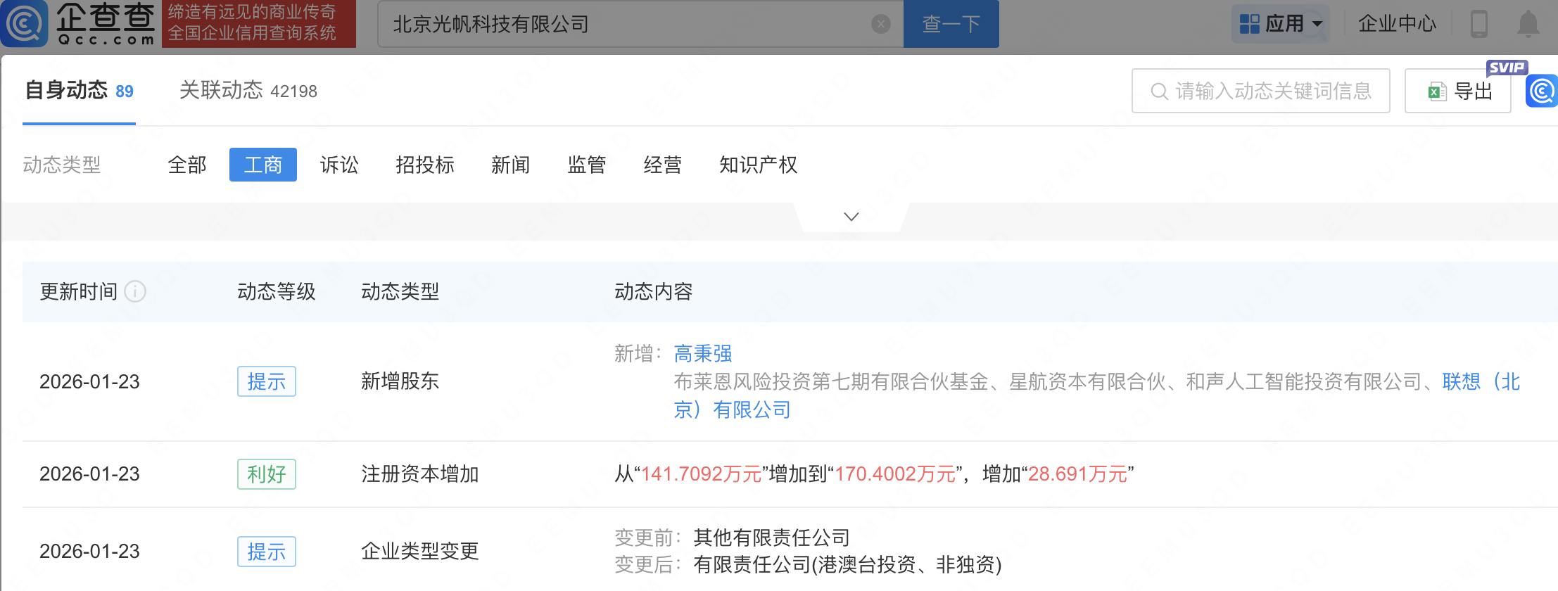 企查查APP显示,近日,北京光帆科技有限公司发生工商变更,新增联想(北京)有限公司等为股东,同时注册资本增至170.4万元。企查查信息显示,该公司成立于2024年,经营范围包含:智能机器人的研发;人工智能基础软件开发;人工智能应用软件开发;人工智能理论与算法软件开发等。据其官网,光帆科技是一家专注于下一代人机交互的科技创新企业,致力于多模态直接意图表达的交互范式革新。