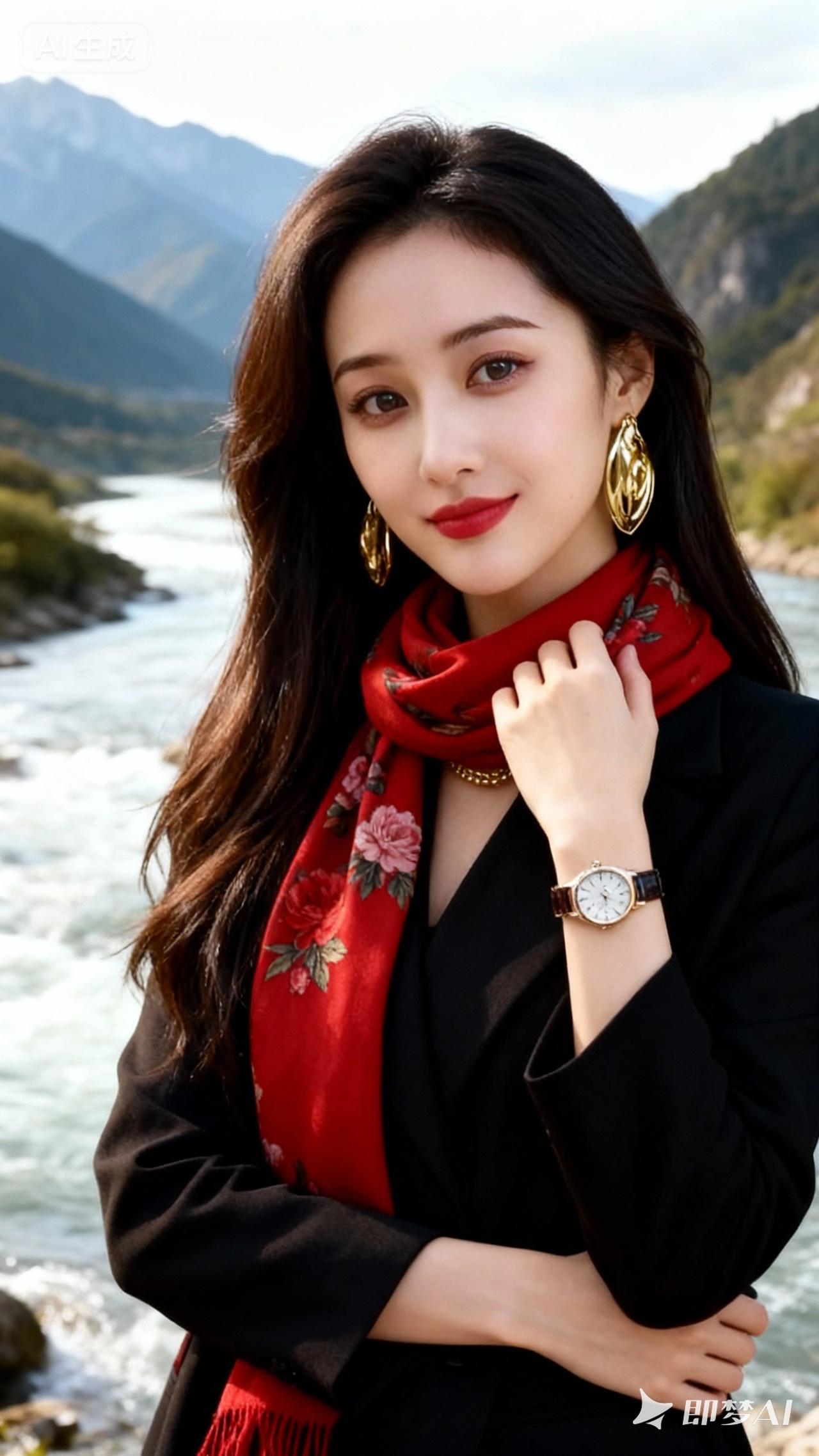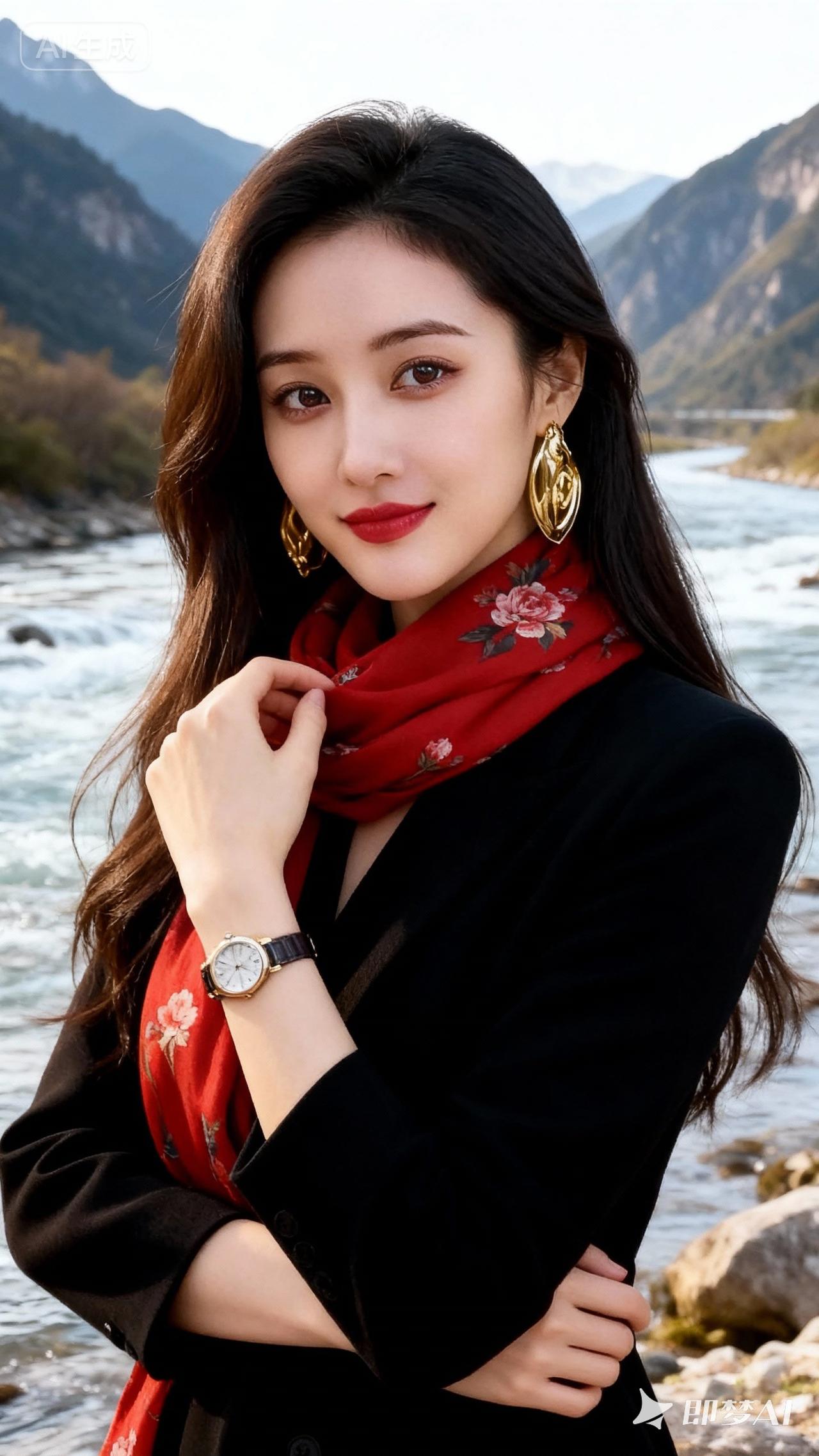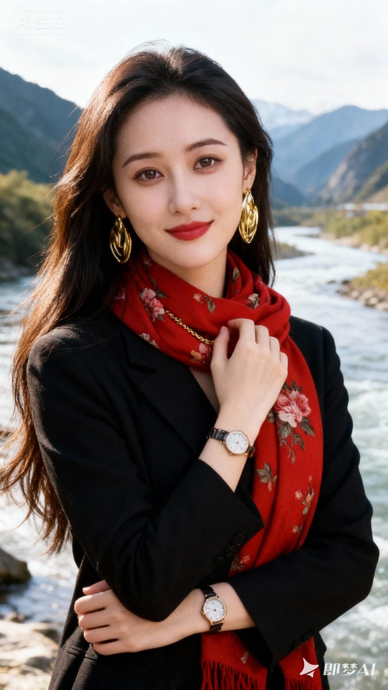 秋日暖阳下的红围巾,自然与优雅的完美结合