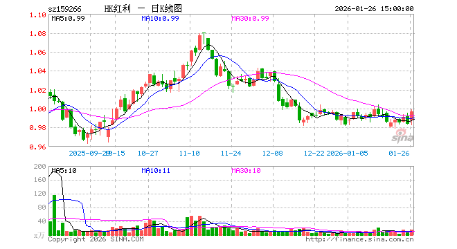 1月26日,港股通央企红利ETF(159266)涨1.32%,成交额1595.71万元。当日份额减少300.00万份,最新份额为5.61亿份,近20个交易日份额减少1.01亿份。最新资产净值计算值为5.64亿元。