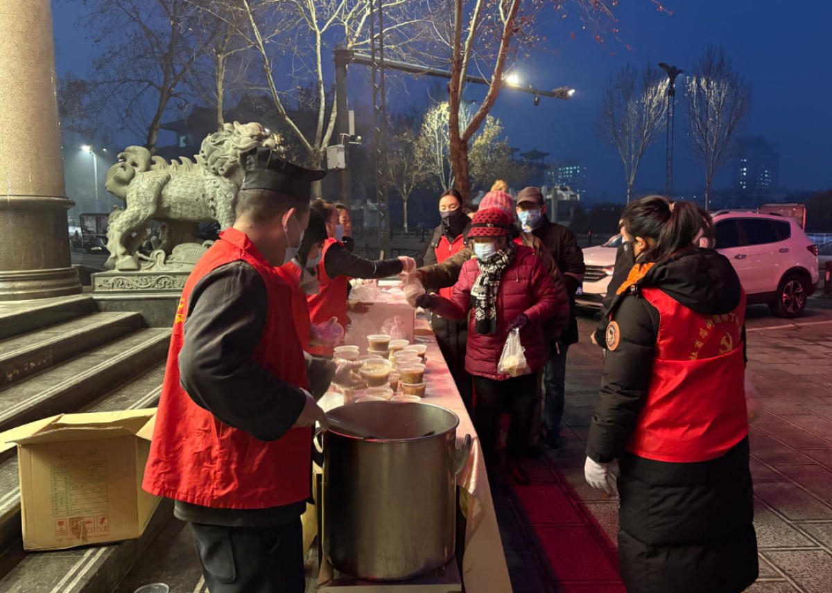 考虑到一些群众不方便来到现场,社区工作人员与志愿者们还带着精心熬制的腊八粥,上门走访慰问辖区困难群众、高龄独居老人,同时为坚守一线的环卫工人、外卖骑手送去暖心粥品,叮嘱大家冬日注意保暖,细致的关怀让大家真切感受到“甜在嘴里,暖在心头”的温情。
