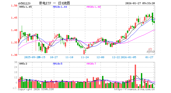 家电ETF(561120)业绩比较基准为中证全指家用电器指数收益率,管理人为富国基金管理有限公司,基金经理为牛志冬,成立(2022-01-25)以来回报为43.07%,近一个月回报为4.36%。
