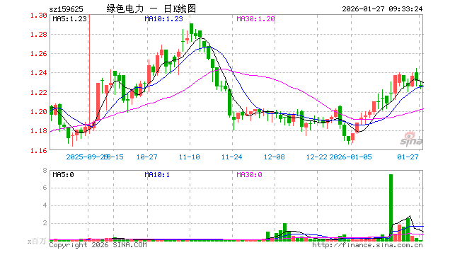 1月27日,绿色电力ETF嘉实(159625)开盘跌0.32%,报1.227元。绿色电力ETF嘉实(159625)重仓股方面,中国核电开盘涨0.00%,长江电力涨0.00%,三峡能源跌0.24%,国投电力涨0.00%,中国广核跌0.26%,川投能源涨0.00%,上海电力跌1.17%,华能国际涨0.00%,华能水电涨0.11%,国电电力涨0.21%。