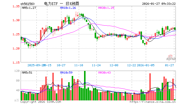 1月27日,电力ETF(561560)开盘涨0.08%,报1.273元。电力ETF(561560)重仓股方面,长江电力开盘涨0.00%,中国核电涨0.00%,三峡能源跌0.24%,国电电力涨0.21%,永泰能源跌0.60%,华能国际涨0.00%,国投电力涨0.00%,中国广核跌0.26%,上海电力跌1.17%,川投能源涨0.00%。