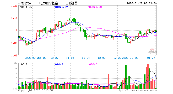 1月27日,电力ETF基金(561700)开盘跌0.18%,报1.100元。电力ETF基金(561700)重仓股方面,长江电力开盘涨0.00%,中国核电涨0.00%,三峡能源跌0.24%,国电电力涨0.21%,永泰能源跌0.60%,华能国际涨0.00%,国投电力涨0.00%,中国广核跌0.26%,上海电力跌1.17%,川投能源涨0.00%。