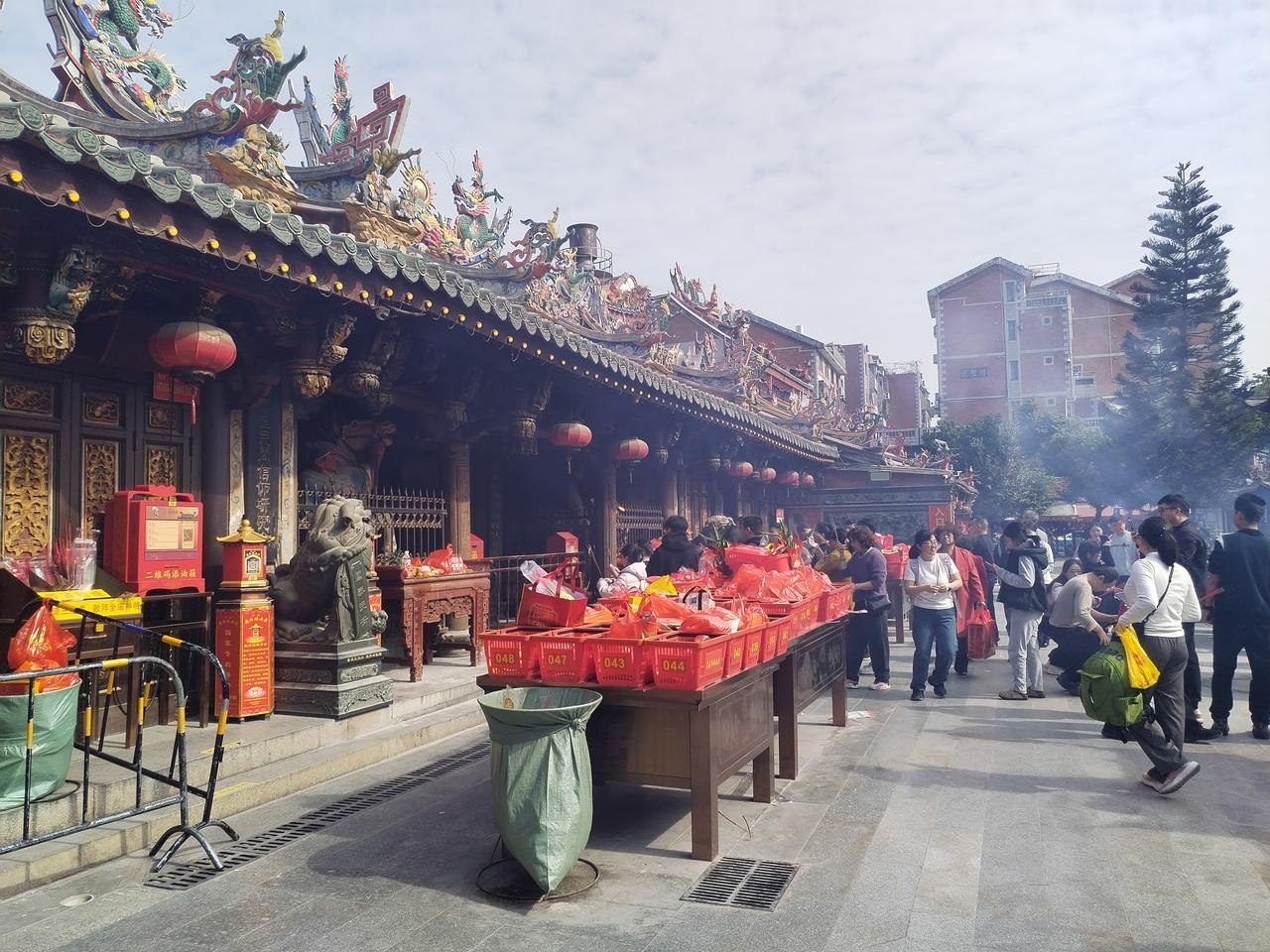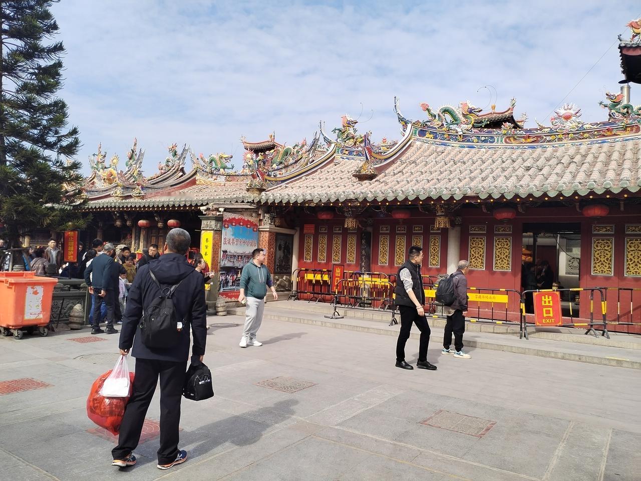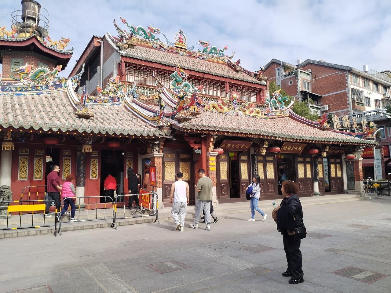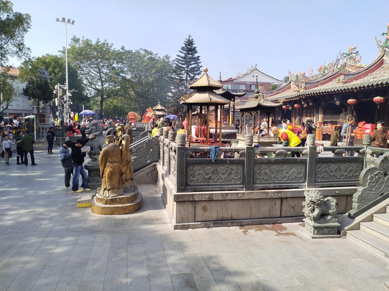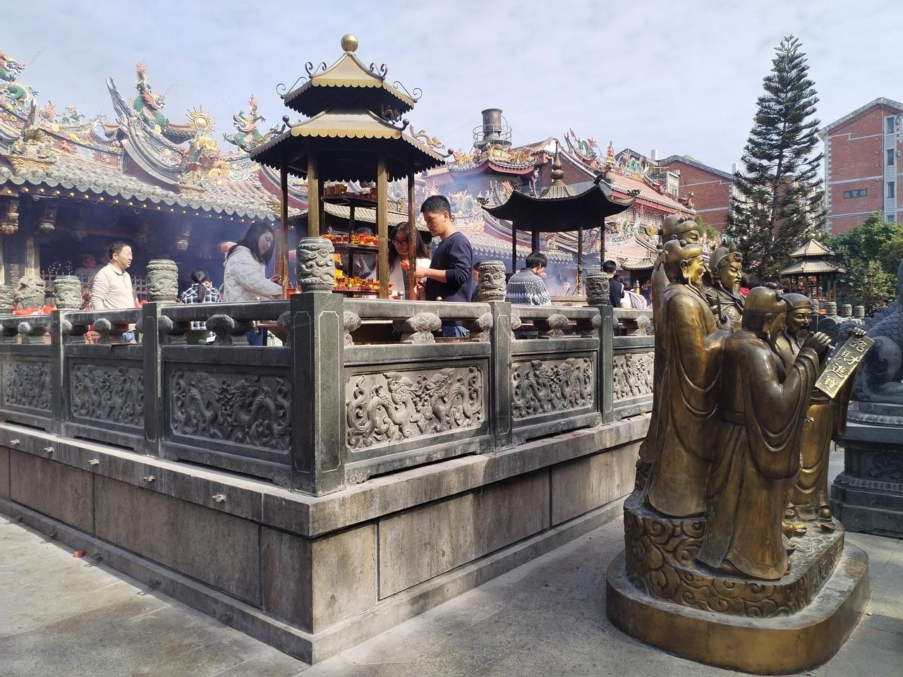 泉州旅游观光电动车,(小白龙)不管你在哪条街,去往哪个景点,招手即停,(2元钱)非常方便。 坐上了小白龙,很快来到应该是泉州香火最旺的地方泉州关帝庙。 泉州寺庙建筑艺术独特,层顶上充满了动感,是古代现代人,利用陶瓷碎片,粘贴出最奢华的各种各样的造型屋脊。关帝庙在阳光的照耀下金碧辉煌。 关公,被奉为商业的保护神,买卖人,店中都供奉关公神,寻求关庇护。 关帝庙,自然的成为做生意人前来求财祈福或在生活中遇见各种事情,都会前来求关帝庙抽签,上香以求神明来解答。 100个签,对应人间各种疑难杂事,各种各样的解答,心中有感,才会前来求助于神明解惑。 关帝庙,人潮涌动,香火缭绕,日夜人流不断,香火不息。 老伴儿幸运的抽到了第一签,(2元钱)求到了令她满意的解答。