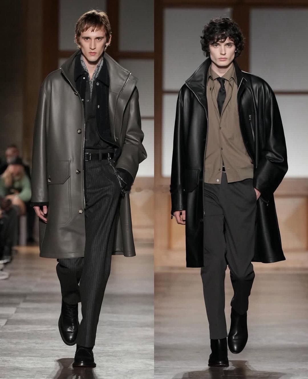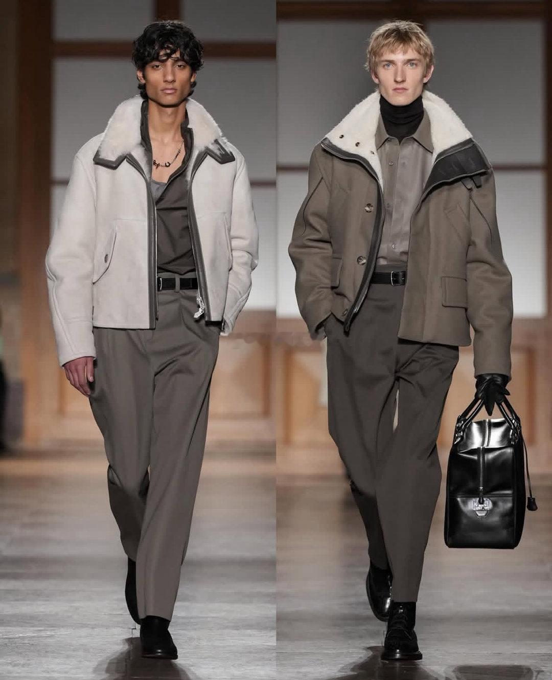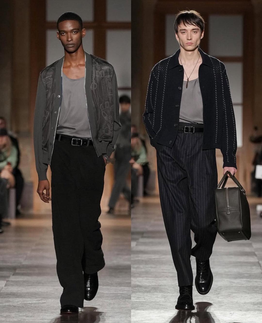 维罗妮卡·尼夏南的收官之作,HERMÈS 2026秋冬男装系列正式登场!全新系列延续一贯的低调奢华与实用,利落剪裁勾勒精准比例,面料更是质感拉满,从细腻针织、羊毛到珍稀皮革,每处细节皆显奢华。羊皮夹克、双面羊绒羊毛大衣、细条纹西装…精湛工艺与高级材质融合,诠释“穿着之悦”。内衬细节亦藏巧思,唯有穿着者能深切体会。整体色调深邃沉稳,却以一抹亮黄与橙彩点睛,为秋冬注入盎然生机。男装周巴黎时装周巴黎男装周