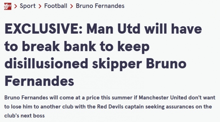 B费正在考虑自己在老特拉福德的未来,赛季结束后,他肯定会收到其他俱乐部的大量报价。B费对曼联的运营方式和频繁换帅感到失望,去年夏天他曾接近离开曼联,但最终拒绝了加盟沙特的机会。