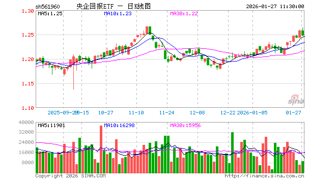 1月27日,截止午间收盘,央企回报ETF(561960)跌0.87%,报1.247元,成交额112.41万元。央企回报ETF(561960)重仓股方面,中远海控截止午盘涨0.07%,中国神华跌0.72%,中国石油涨1.54%,中国石化涨0.47%,中国海油跌0.81%,中粮糖业跌3.75%,中国外运跌0.52%,招商银行涨1.10%,宝钢股份跌0.68%,四川美丰跌1.72%。