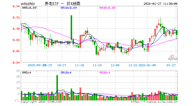 1月27日,截止午间收盘,养老ETF(516560)跌1.00%,报0.888元,成交额269.18万元。养老ETF(516560)重仓股方面,中国中免截止午盘跌2.46%,新诺威涨4.30%,万辰集团涨0.53%,新乳业跌2.62%,中国太保涨3.23%,中国平安涨3.07%,永辉超市跌3.09%,菜百股份跌4.87%,首旅酒店跌2.63%,甘李药业跌0.78%。