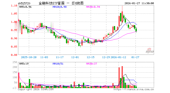 金融科技ETF富国(515720)业绩比较基准为中证金融科技主题指数收益率,管理人为富国基金管理有限公司,基金经理为殷钦怡,成立(2025-09-22)以来回报为-4.33%,近一个月回报为5.33%。