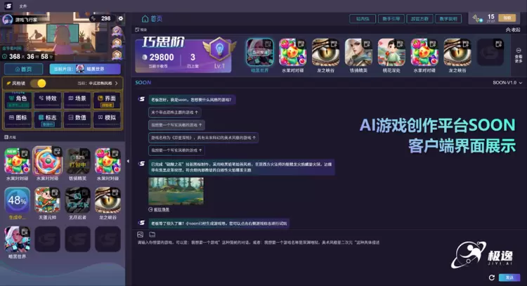 极逸人工智能运营总监于佳对此补充表示:“获奖是对我们技术路线的认可,更是对我们'以人为本'产品理念的肯定。SOON平台正在做的,是将专业级游戏创作能力转化为普通用户触手可及的工具。我们关注到,越来越多的独立开发者和小型工作室通过我们的平台,实现了从创意到可玩游戏的高效转化,这正是AI技术普惠价值的体现。未来,我们将在降低创作门槛的同时,持续提升AI生成内容的质量与可控性,让技术真正服务于人的创造力。”