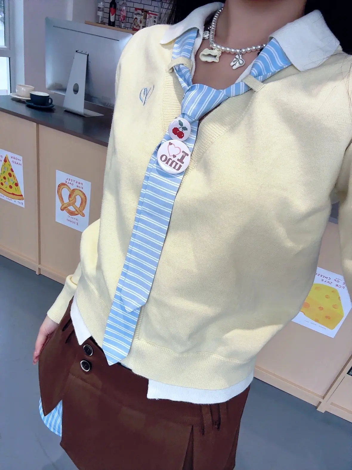 🍮♡今天是奶黄包 今天inspo 是黄油可露丽 领带上的小徽章吼可爱