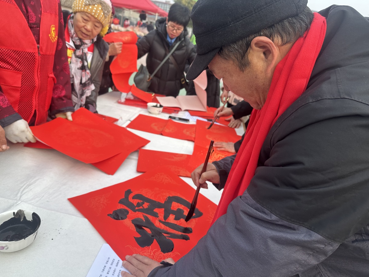 舞台之外,暖心服务专区同样人气爆棚。医疗工作者坐阵义诊台,为村民提供健康咨询与诊疗服务;书法爱好者挥毫泼墨,将一幅幅满载祝福的文明乡风主题春联、福字送到村民手中;法律工作者开展普法讲座,普及反诈防骗等法律知识;免费理发点前村民有序排队,志愿者用娴熟技艺传递关爱;热气腾腾的腊八粥香气四溢,为冬日增添了浓浓的暖意。