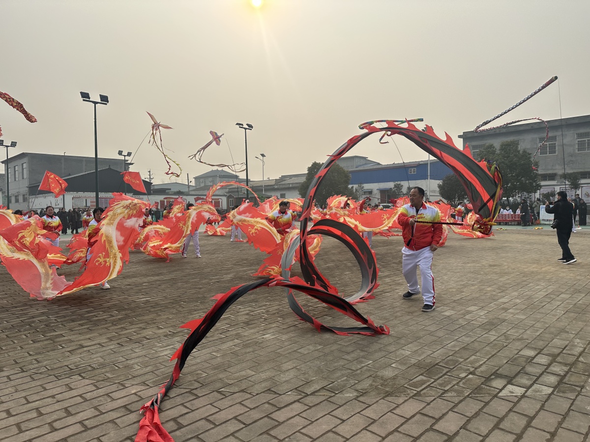 活动伊始,县体育运动中心精心筹备的暖场节目舞龙表演《龙腾盛世》率先登场,为“村晚”拉开序幕。金龙随着鼓点翻腾跳跃、穿梭盘旋,时而昂首摆尾,时而舒展身姿,灵动的表演将龙的气势与神韵展现得淋漓尽致,瞬间点燃现场气氛,赢得村民阵阵喝彩,为整场活动奠定了喜庆热烈的基调。