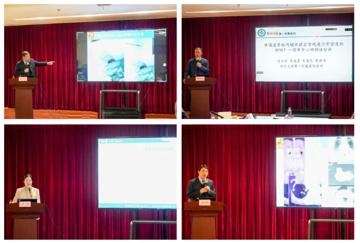 培训会上,朱卉敏、徐玉生、吴丹、张昌盛、李鹏、李源、李智浩、刘雅普等专家教授,围绕《囊壁穿刺法PVP治疗Kummell病》《单通道脊柱内镜术前应常规进行骨密度检测吗?一项单中心回顾性分析》《骨质疏松症的规范诊治》《经皮椎体成形术的并发症及处理》《〈特立帕肽治疗骨质疏松性骨折中国专家共识(2024版)〉解读》《当椎体骨质疏松骨折遇上特立帕肽》《老年髋部骨折围术期抗骨质疏松管理》《三柱强化技术治疗Kummell病》等前沿课题,开展了精彩的学术分享与经验交流。宛磊、赵广俊、张绍安、张晖、侯秀伟、张宏宇等专家还针对典型病例进行了精准点评,为参会人员答疑解惑。