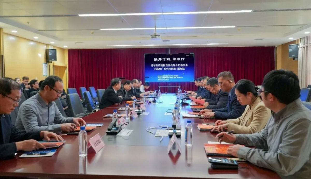 1月23日,“强骨计划·中原行”老年骨质疏松性骨折综合防治体系示范推广系列培训班——漯河站在漯河医专二附院(漯河市骨科医院、漯河市立医院)顺利启动。会议特别邀请大会主席、河南省骨科医院朱卉敏教授,郑州大学第一附属医院骨科徐玉生教授,河南省骨科医院脊柱微创外三科主任张昌盛教授、骨质疏松科副主任吴丹教授、脊柱微创外三科李源教授等知名专家莅临出席。漯河医专二附院院长王齐超、副院长吴广良及全市骨科专业领域的专家学者参加了本次会议。