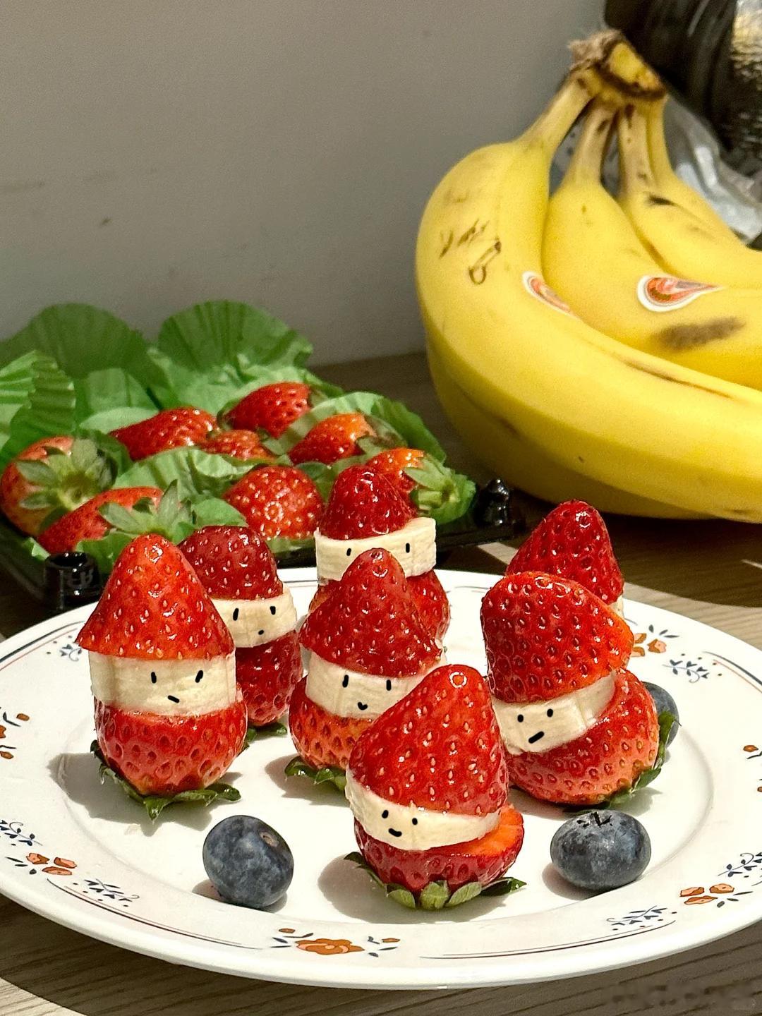 冬天一到,草莓雪人大军就这么萌萌地上桌啦做法简单又多样!干噎酸奶、香蕉、奶油……