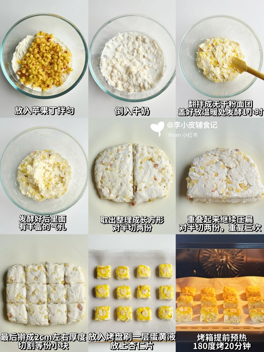 今天分享一款敲好吃无负担的酵母版苹果司康~ 0糖0添加小宝宝也能吃,做法简单,搅一搅就轻松搞定,外酥里软,果香奶香浓郁,口感丰富一口惊艳,一家老小都敲爱吃! 再加上一碗香浓黑芝麻燕麦奶糊羹,早餐这样搭着吃不要太舒服🥳~ ♨️ 具体操作步骤参考图片哦~ 👩🏻🍳食材大小和分量根据宝宝的咀嚼能力和实际情况来处理喔~
