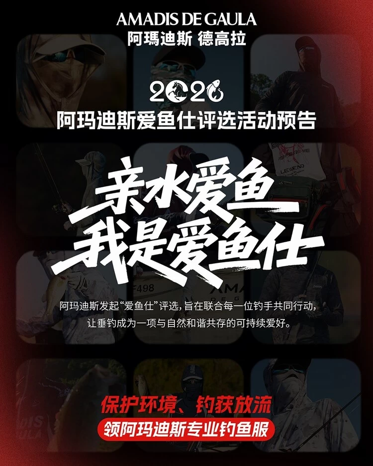 在垂钓运动愈发贴近大众生活的当下,如何让这项户外爱好与生态保护实现深度融合,成为行业与钓友共同关注的命题。近日,国内首个专业钓鱼服品牌阿玛迪斯·德高拉正式宣布,将于2026年2月1日启动年度“爱鱼仕”评选活动,以“亲水爱鱼,我是爱鱼仕”为主题,号召全国钓手以实际行动践行“保护环境、钓获放流”的可持续垂钓理念。