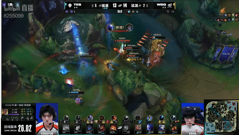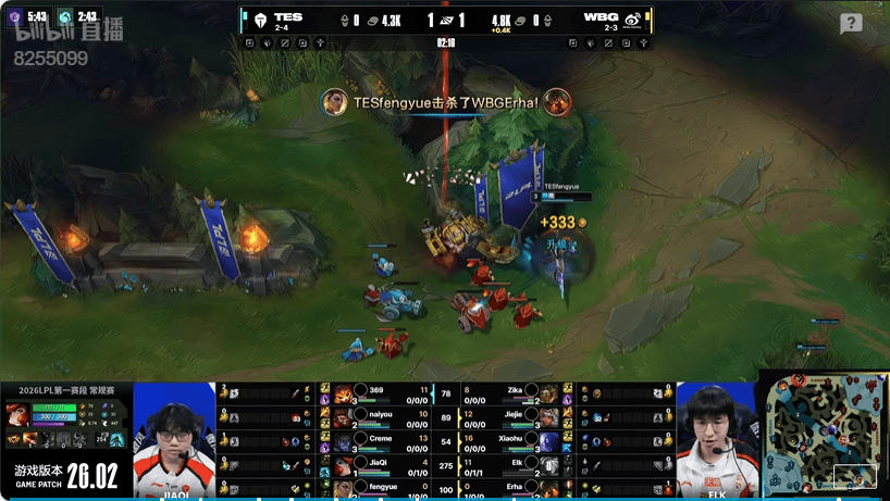 虎扑01月27日讯TES蓝色方,WBG红色方