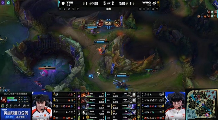 [9:57]Xiaohu瑞兹开车包下,JiaQi女枪再次被强杀!WBG立马还了一波0换2!随后WBG拿下小龙!团战端又打了TES一次1换2!劣势全部打回,WBG反而经济优势了!
