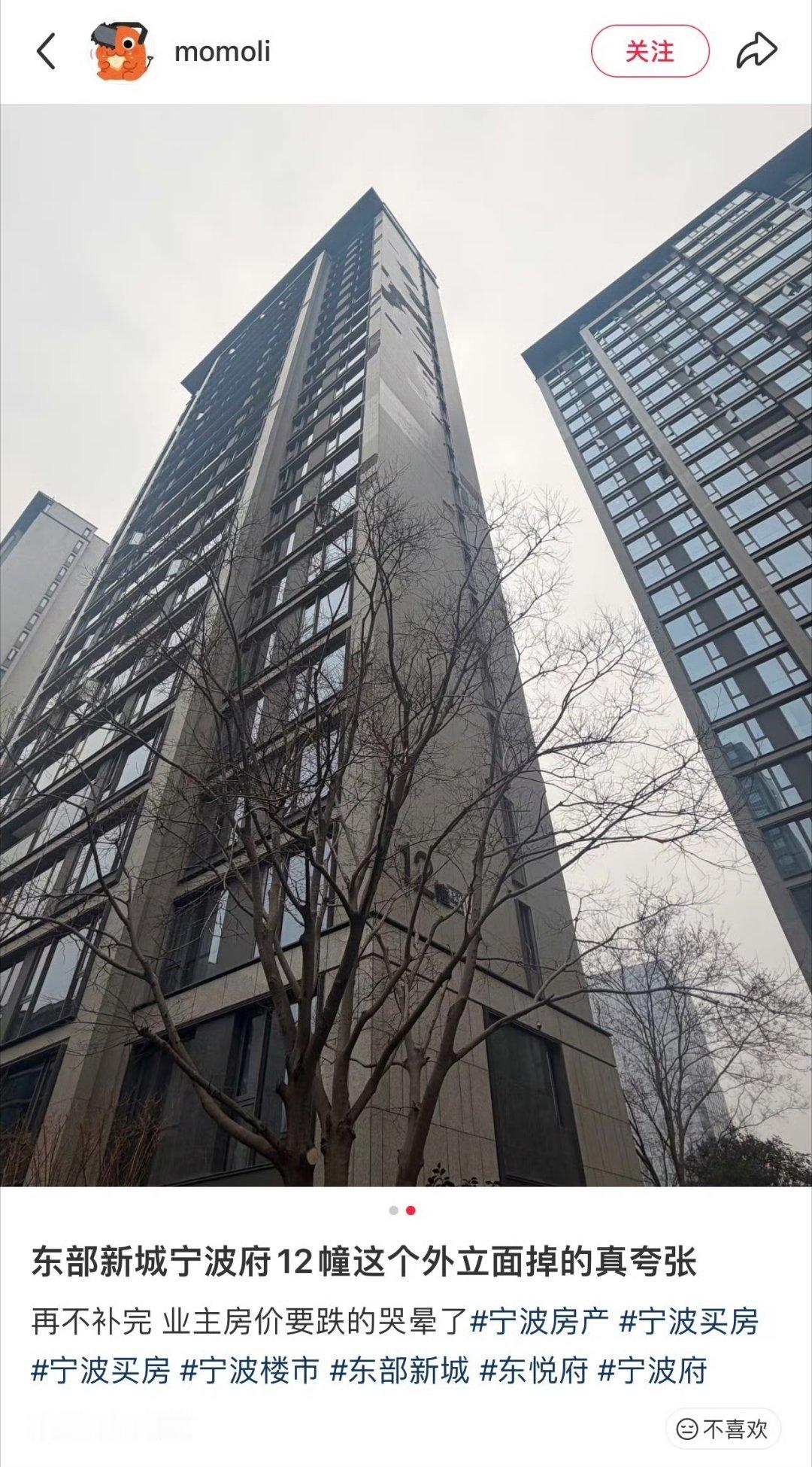 宁波网友吐槽东部新城一小区外立面斑斑点点 网友投诉:东部新城一小区外立面掉的真夸张再不补完 业主房价要跌的哭晕了(以上内容来源于网友投稿,发帖仅为了提供更多的信息,不代表本号同意观点,也不构成意见建议)