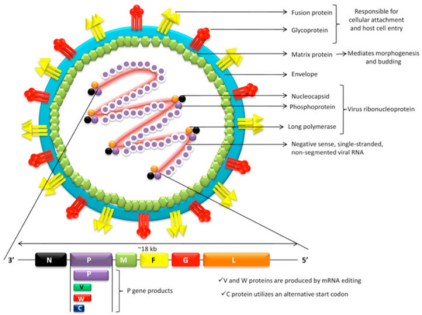 尼帕病毒属于副粘病毒科,可感染动物和人。尼帕病毒在自然界主要存在于果蝠身上。人类直接接触被病毒感染的动物,或食用被这些动物的体液和排泄物污染的食品可被感染。另外值得关注的一点是,密切接触被病毒感染的病人或其体液也可造成传播。
